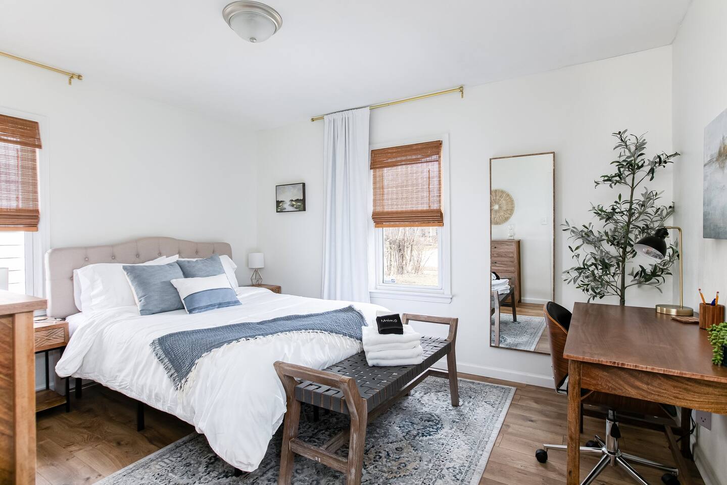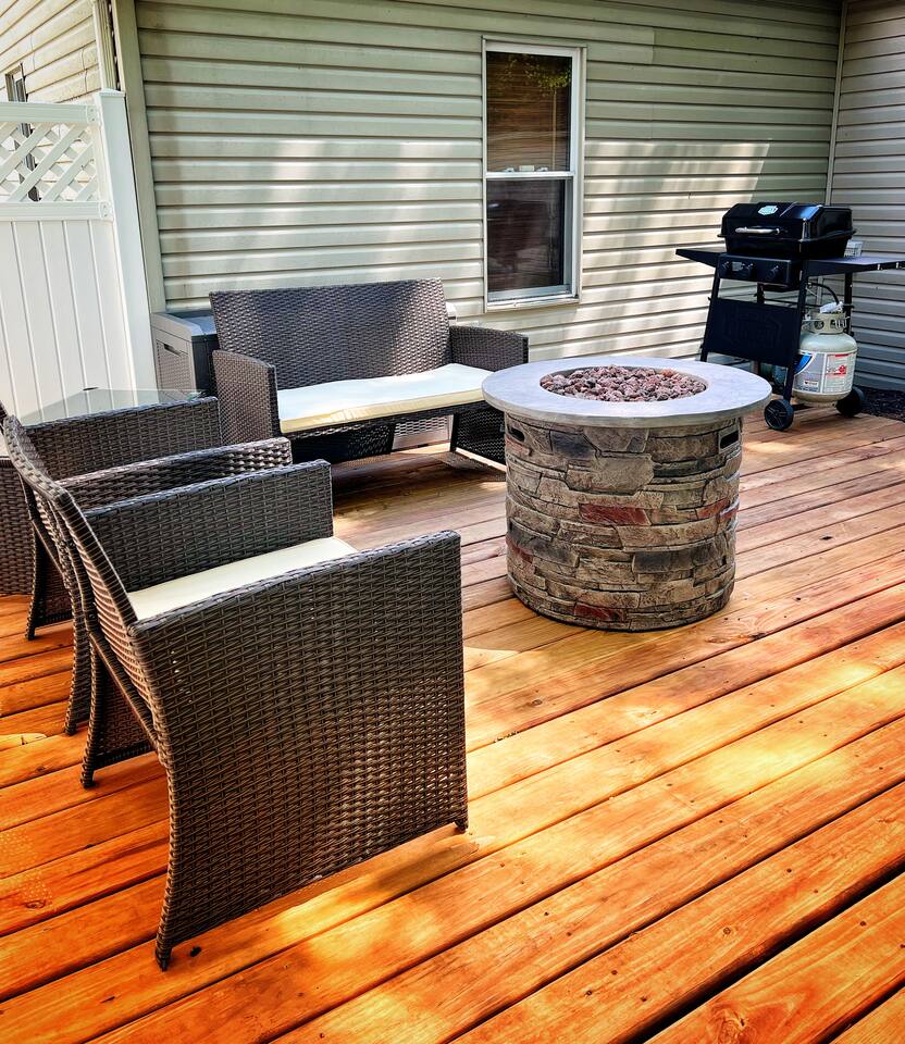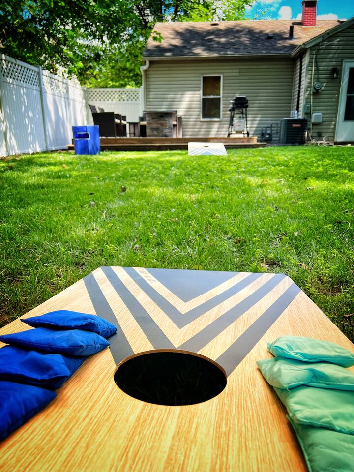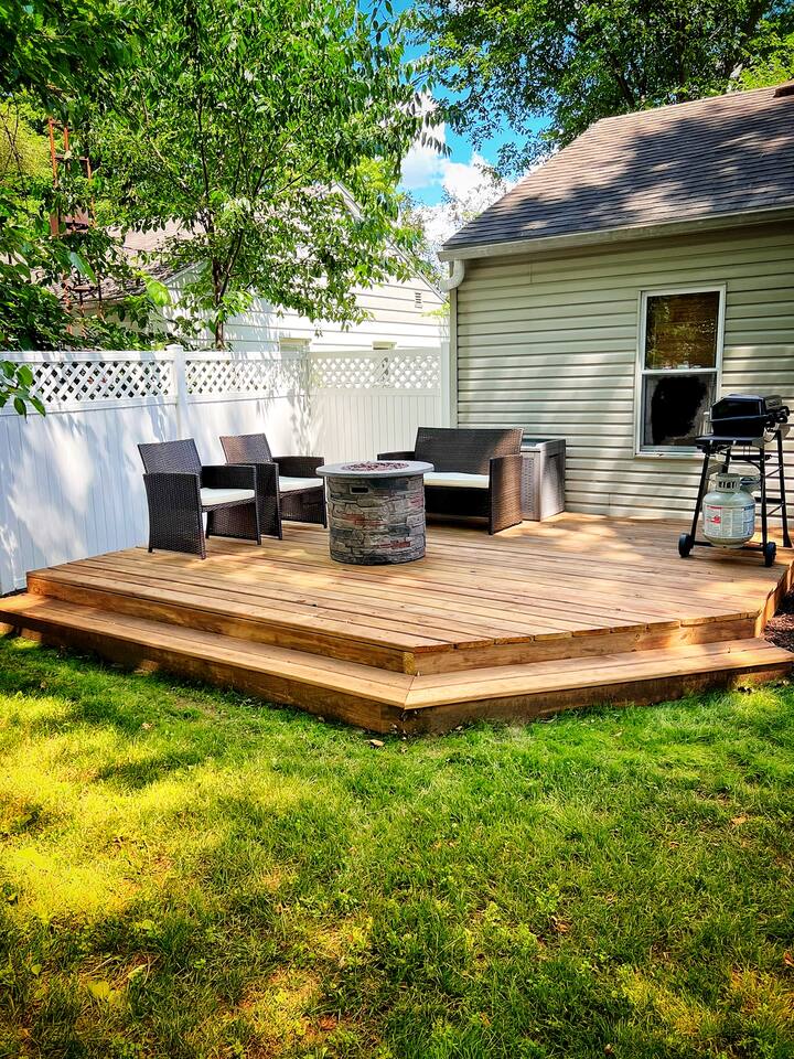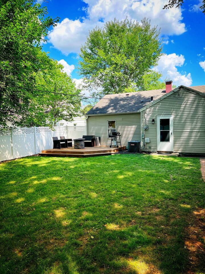 Enjoy this newly remodeled home located within walking distance to Notre Dame. This home features 2 bedrooms with queen beds in each, 1 bathroom, and a full-size sleeper sofa. After your event at Notre Dame, relax and cookout on the new deck in the private backyard. The outdoor area also features a fire pit and backyard games for your entertainment. Off street parking for up to three cars and fast wifi is also available. A dedicated workspace is available for those working in between the fun.